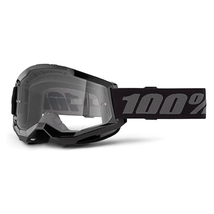 100% Maschera da cross Strata 2 Black lente trasparente